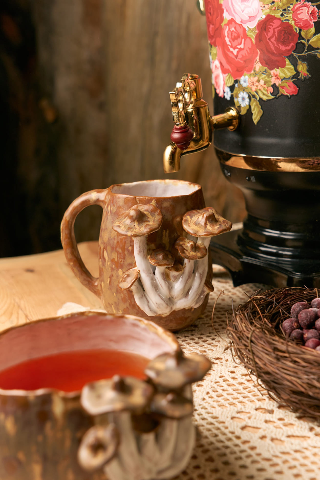 - Аутентичный приветственный стол с домашним вареньем и авторскими закусками. Ароматный Алтайский чай