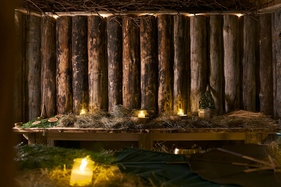 - Сенная берлога — мягкое гнездо из душистого сена, где можно отдохнуть, завернувшись в тяжёлое одеяло и слушая сказки